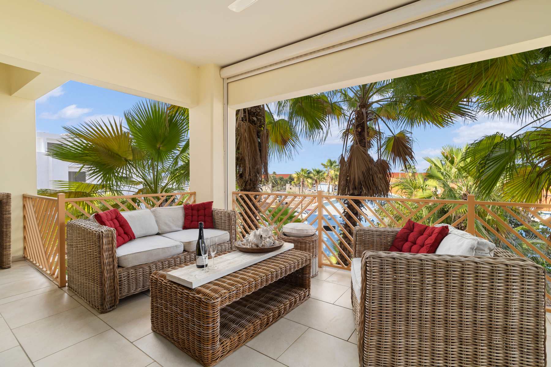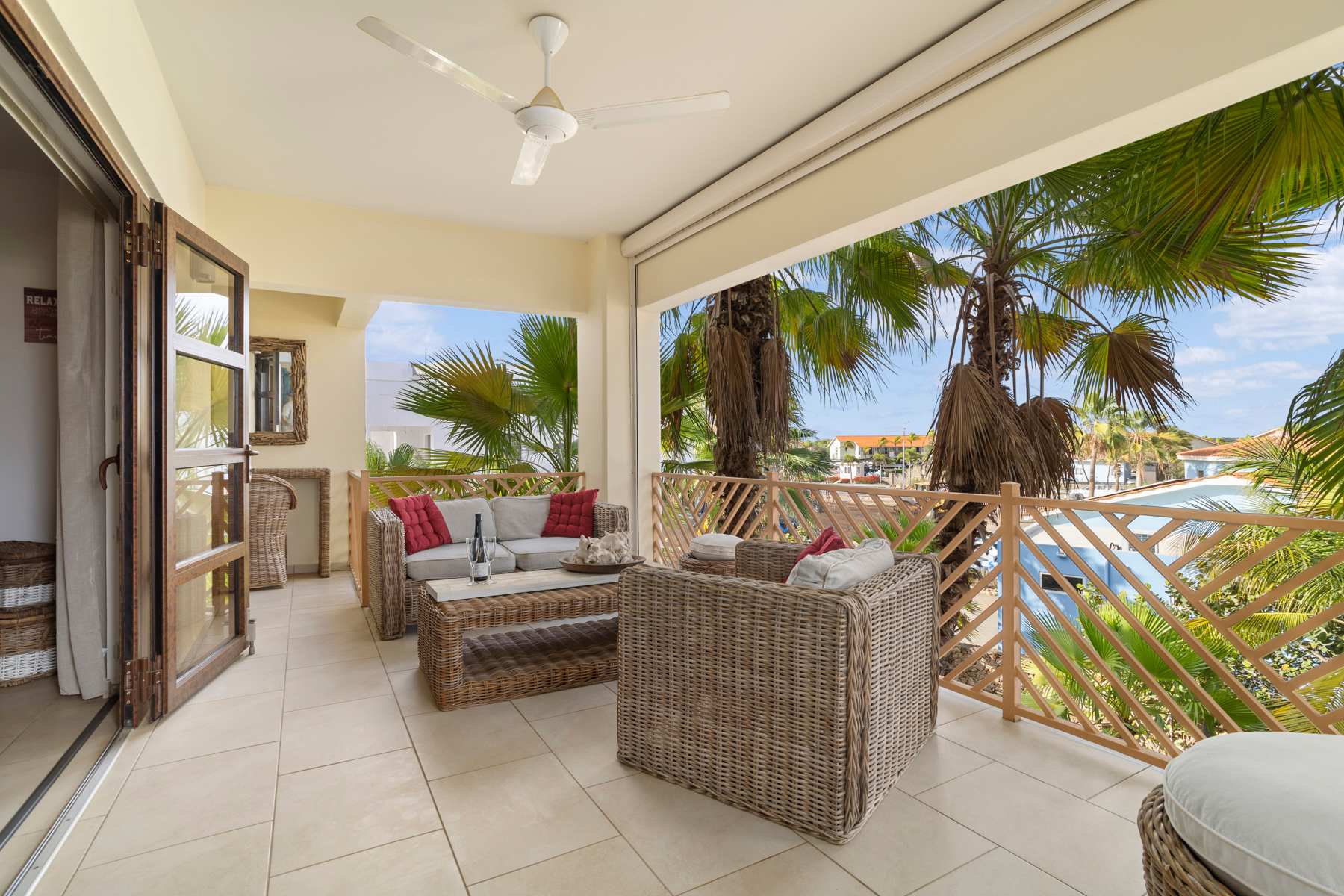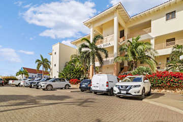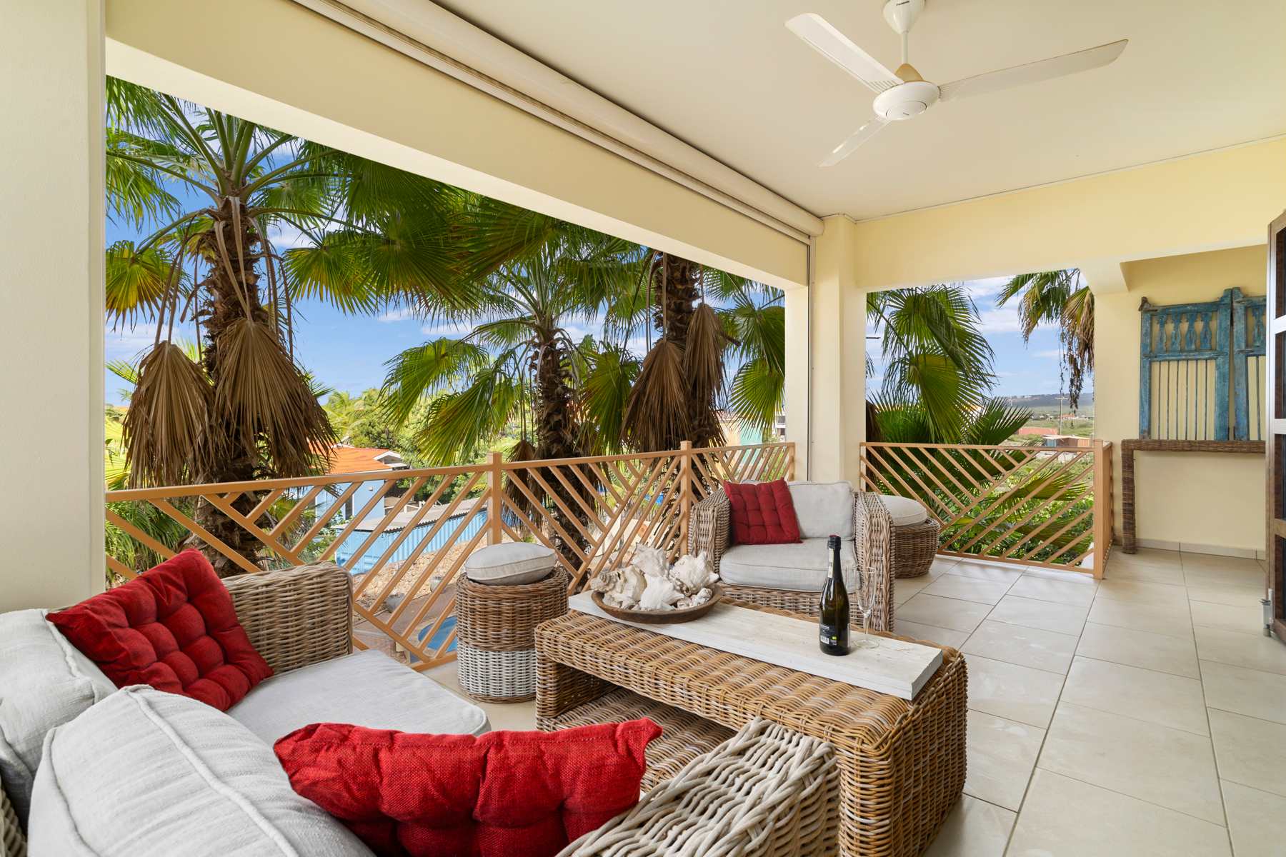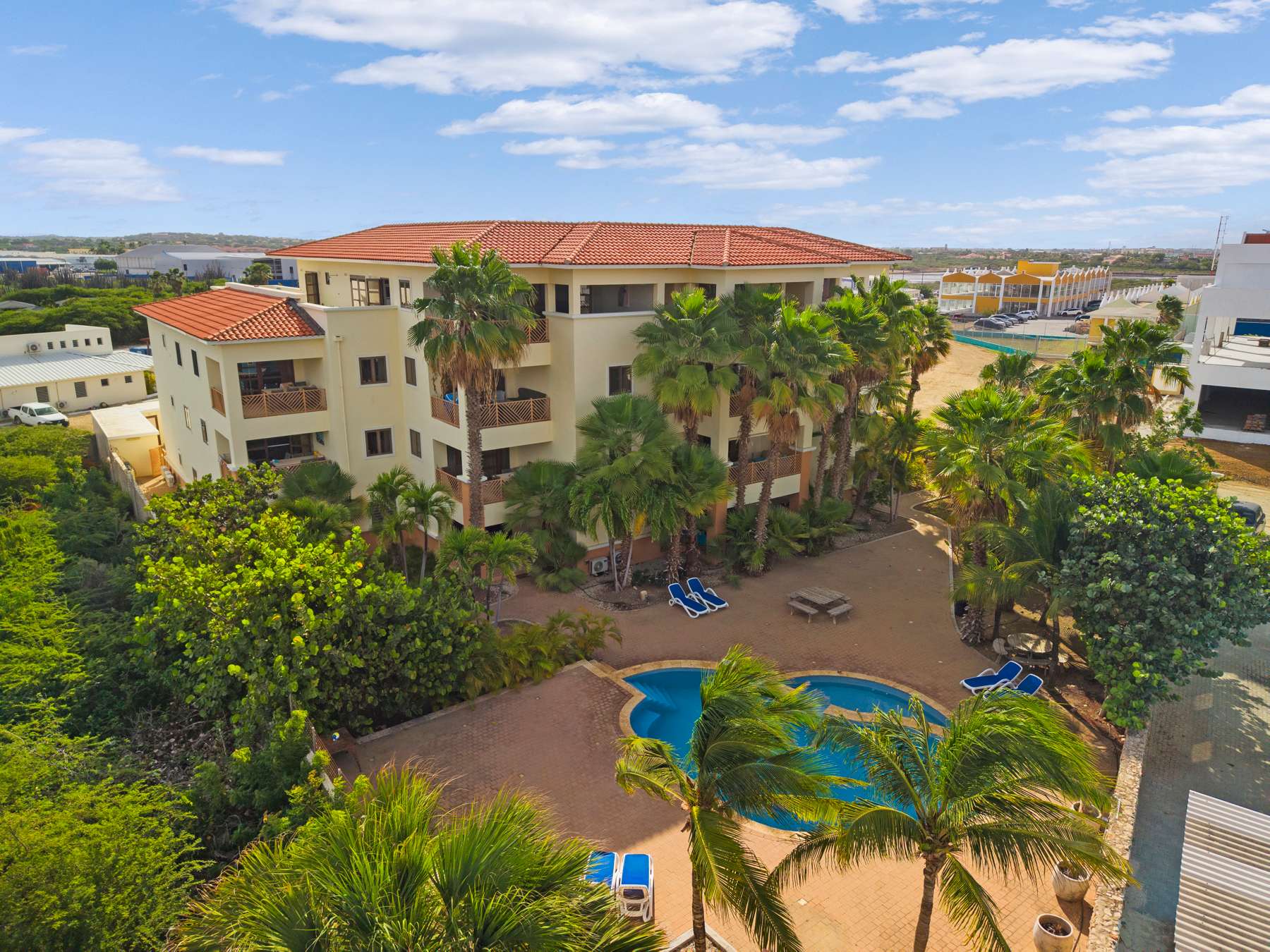 Bon Bida Di Sol is a spacious apartment in the Bon Bida Apartmenten complex in the Hato neighborhood, on what is the second floor in Dutch terms (third floor in the data). The apartment measures 154 m² (approximately 1,658 ft²) and offers views of the green garden and the communal pool. Zhung Kong supermarket is 850 meters away, Isidel Beach Park 350 meters, restaurant Biña at Chogogo 400 meters, and dive center Dive Friends Hamlet 900 meters. Guests have access to the regular shared pool of the complex.