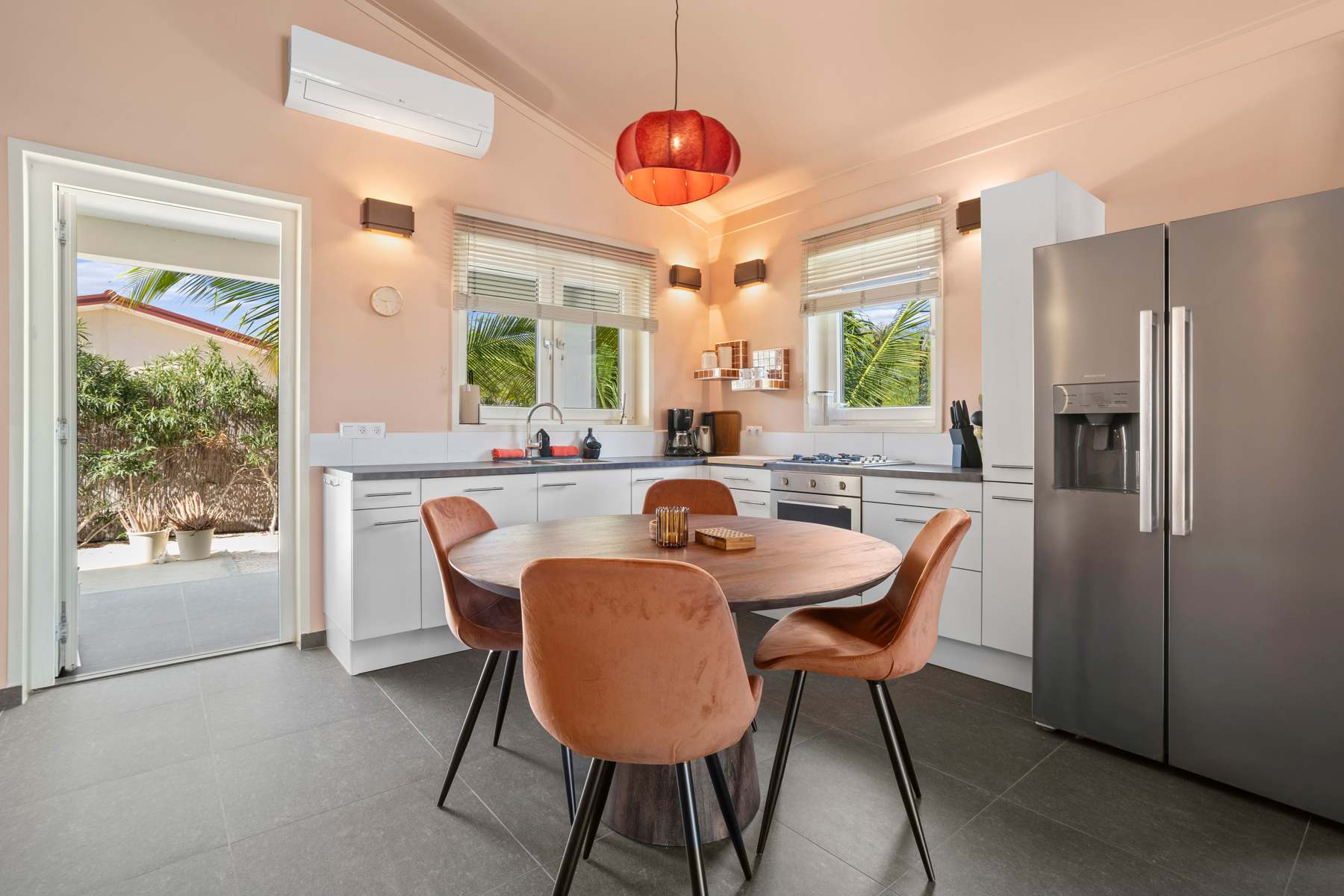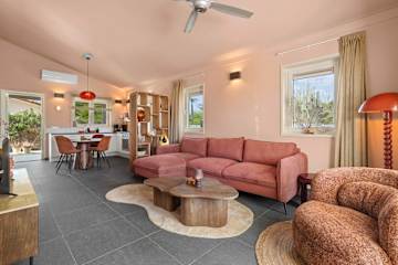 Kas Honkie Tonkie is a single-level vacation home in the Sur Salinja neighborhood, offering pleasant garden views and 110 m² of living space. Supermarket Zhung Kong is 2.4 kilometers away, Isidel Beach Park is 1.5 kilometers, restaurant It Rains Fishes is 1.2 kilometers and dive center Dive Friends Den Laman is 1.5 kilometers from the house. In the private garden you will find a regular private pool with pool deck and several seating areas, allowing you to fully enjoy Bonaire’s outdoor lifestyle.