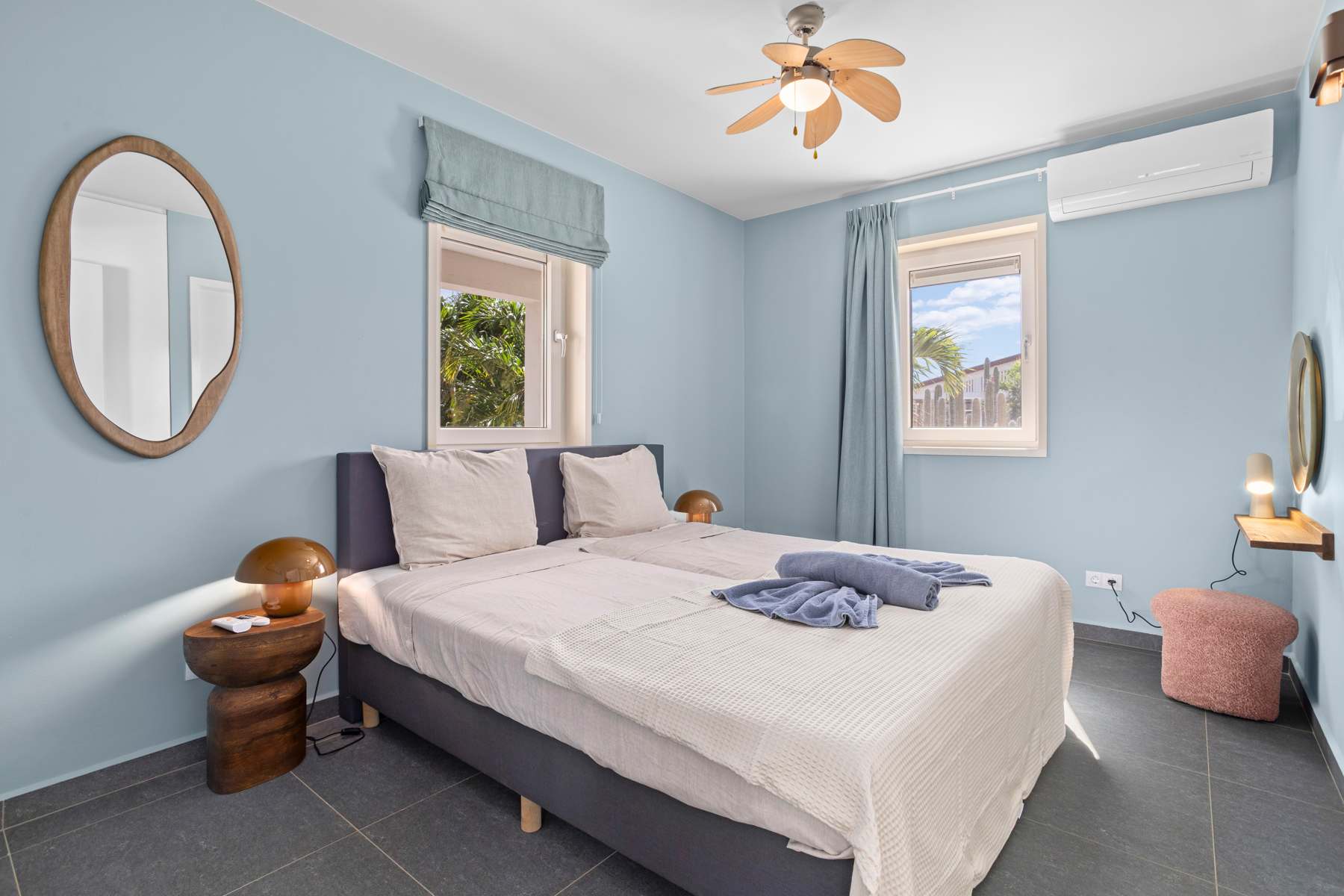 As a guest of Kas Honkie Tonkie you have access to the entire home, including both bedrooms, the two bathrooms, the living room with a/c, open kitchen and all outdoor areas such as the private garden, terrace, covered porch and pool deck with private pool. Parking spaces on the property and on the street are also available for your use. To warmly welcome our guests and explain the accommodation and our beautiful island, we handle all arrivals in person. The Sunwise hosts of the property will arrange a meeting time with you for your arrival.