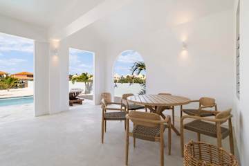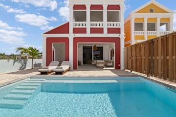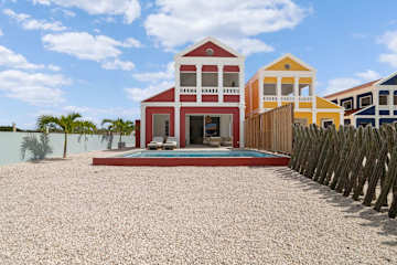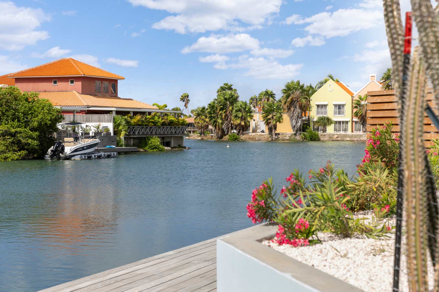 Laguna Serena Villa is a single-level apartment in the Kralendijk neighborhood, in the waterfront resort Water Villas Bonaire. The 100 m² apartment sits directly on the Laguna Marina and offers views over the calm lagoon water. Van den Tweel supermarket is 2 kilometers away, Te Amo Beach and Donkey Beach are 1 kilometer away, Sebastian’s Restaurant is 1400 meters away, and dive center Dive Friends Port Bonaire is 750 meters away. Outside you will find a private pool in the garden, a pleasant covered veranda, and a direct location on the lagoon water.