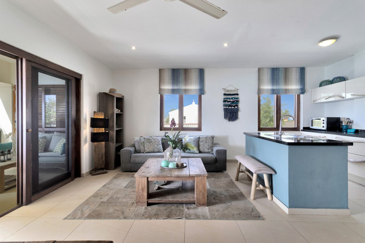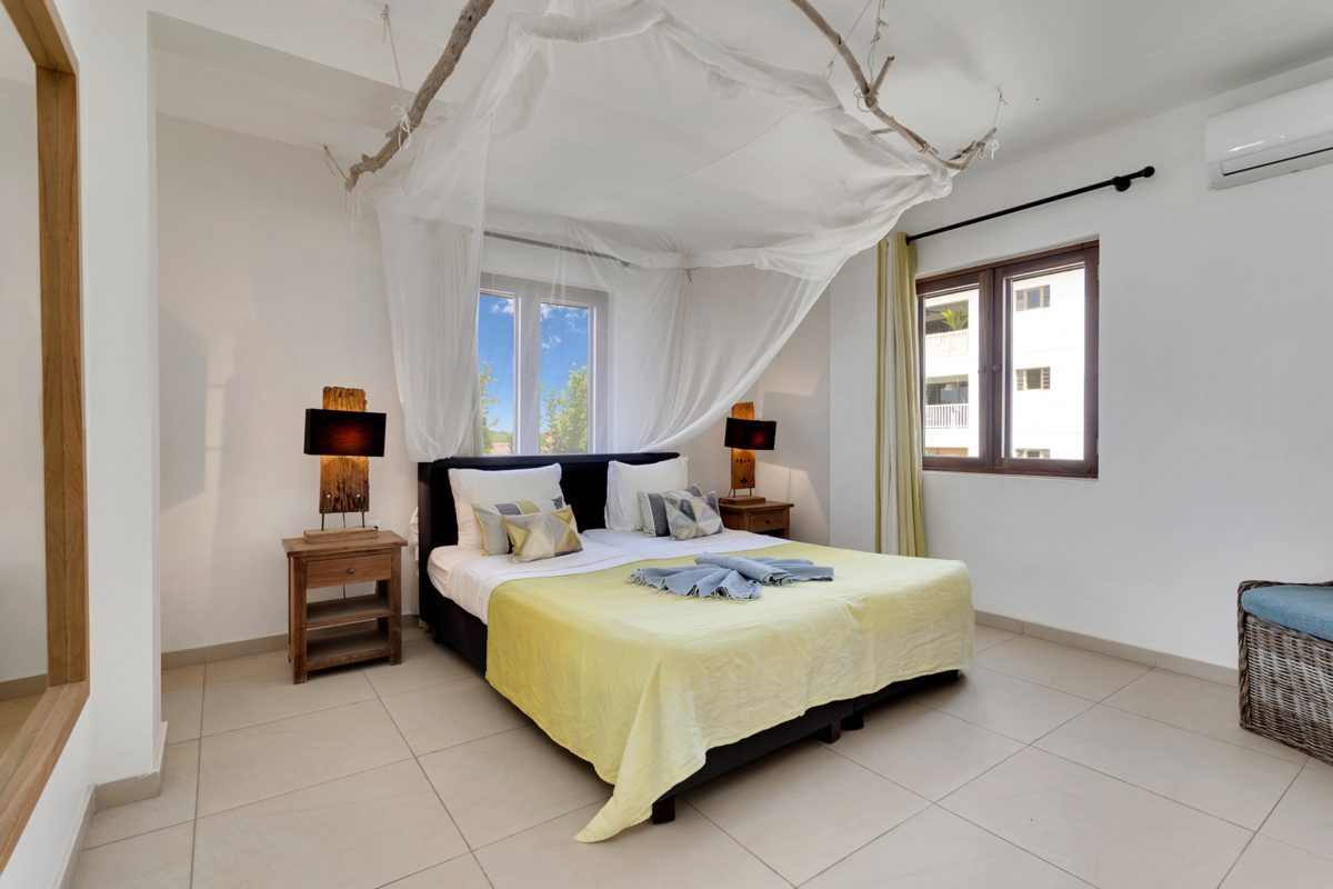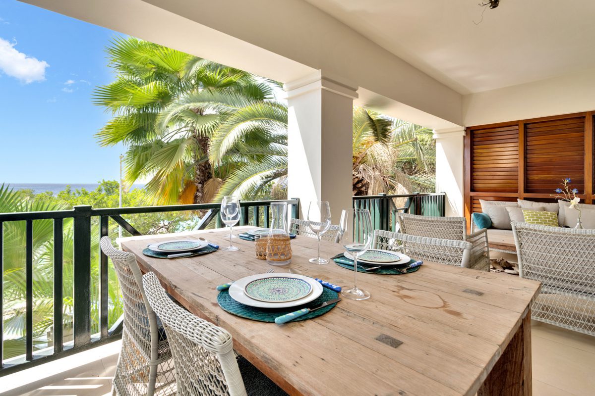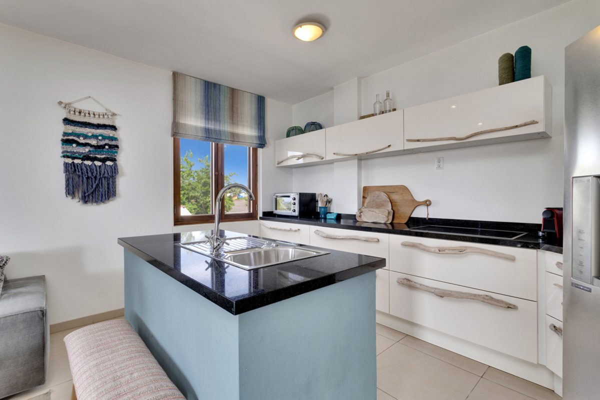 This spacious apartment at Kaya C.E.B. Hellmund 29 in Kralendijk, in the Chachacha Beach Apartments complex, offers approximately 120 m² of living space with a spectacular panoramic sea view. The breezy balcony is a great place to relax after an active day and enjoy beautiful sunsets and outdoor living. Air conditioning in the bedrooms ensures a comfortable night’s sleep, while the open layout of the living area and kitchen suits an active, outdoor-focused lifestyle.