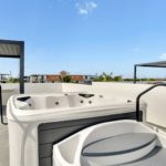 The penthouse offers two bedrooms and two bathrooms, perfect for those seeking comfort and privacy. The open-plan kitchen in the living area is equipped with a dishwasher, refrigerator, cooktop, coffee maker, kitchenware and oven. Outside, you’ll find two fantastic outdoor spaces: a balcony and a spacious rooftop terrace with a jacuzzi. Here you can always enjoy the refreshing trade winds and the view towards the Caribbean Sea. Parking is free on private premises.