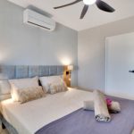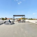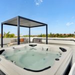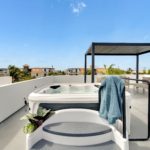 The apartment features two bedrooms and two bathrooms, making it ideal for a couple or two individuals wanting their own space. The open kitchen is connected to the living area and is equipped with a dishwasher, refrigerator, stove, coffee maker, cookware, and an oven. Upstairs you’ll find the rooftop terrace: a wonderful place to relax in the jacuzzi, with views of the neighborhood and the sea. Parking is free on site.