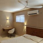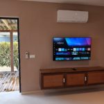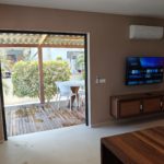 The entrance is through garden doors on a large covered porch, which is comfortably on the wind. This recently fully renovated apartment is fully equipped with many modern conveniences for a comfortable stay, such as a smart TV in the living room and hot water on the faucets. The kitchen with dishwasher, microwave, oven, induction hob, fridge and freezer is well equipped. Both the living room and bedroom have LG “dual-inverter” air conditioners for economy. In addition, a large ceiling fan hangs above the bed. The sliding windows have screens and blinds, and the four large built-in closets provide ample storage space.