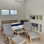 This cozy studio features a bedroom and a bathroom. Central to the living area you will find an open-plan kitchen, equipped with modern appliances such as a fridge, hob and oven. Outside, a section of the villa’s garden offers an idyllic spot under a shady tree with a seating area – the perfect place to relax after a day of diving or windsurfing. And your car? You can easily park that for free on private property.