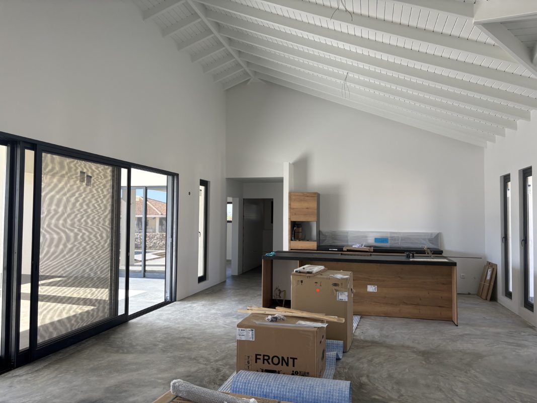 The property offers 3 bedrooms and 2 bathrooms, plus a separate toilet, which makes everyday use more comfortable. the open kitchen with cooking island is centrally positioned in the living area and is equipped with an oven and a dishwasher, ideal for those who enjoy cooking or want to clean up quickly after an active day. The villa is single level and features a private garden with a wind-oriented terrace, where the private pool (regular pool) is located. Parking is available both on the premises and on the street, with a private entrance to the property.