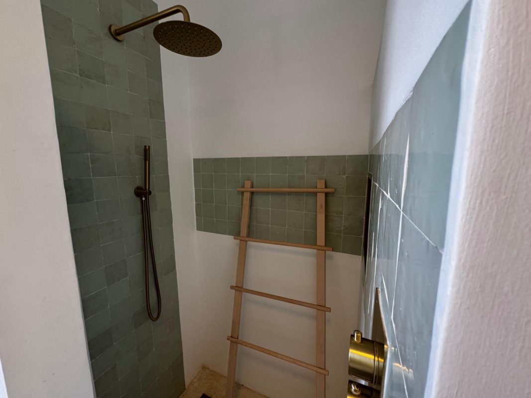 The single-level house offers 2 bedrooms and 2 bathrooms. The master bedroom has 2 single beds and the bedrooms have air conditioning. The open kitchen is fully equipped with a dishwasher, refrigerator, stove, oven, freezer, ice maker, coffee maker, microwave, toaster, blender, kettle, cookware, dishes and silverware and wine glasses. Inside there is a laptop friendly workspace. There is no separate toilet. Outside, the property offers a private garden, a covered veranda and a terrace with outdoor furniture. Parking is easy on the premises and the property has a private entrance.