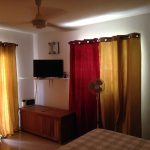 The studio features one bedroom and one bathroom, ideal for a single or a couple. The kitchen is separate from the living room and is equipped with a stove and a refrigerator. On the living room side you will find a balcony where you can enjoy the fresh air and the view. And let’s not forget Villa Italia’s spacious parking lot, perfect for both scooters and cars.