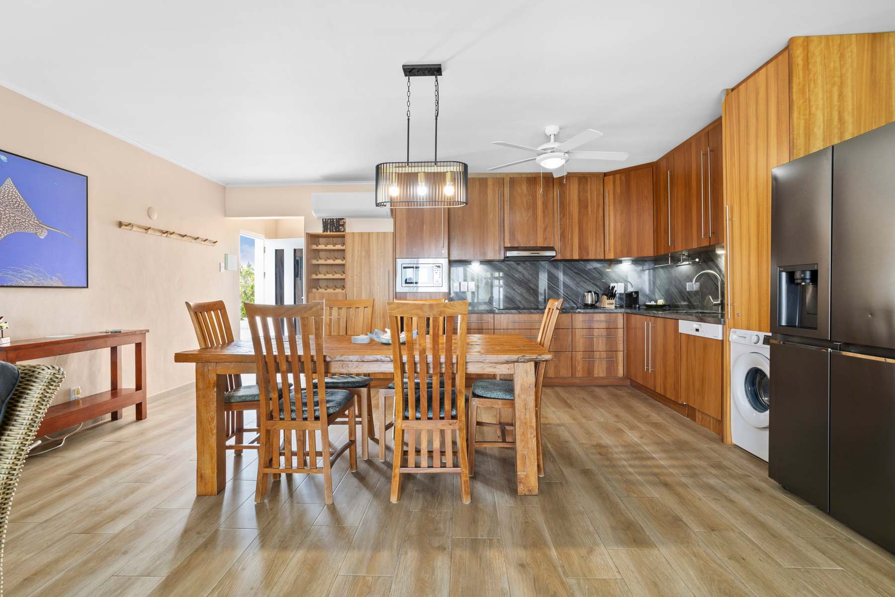 Onze gasten hebben toegang tot het gehele appartement, inclusief drie slaapkamers, twee badkamers, een open keuken en een woonkamer met airconditioning. Op het balkon met buitenmeubels geniet je van het uitzicht over de Caribische Zee. Gasten hebben verder toegang tot het gezamenlijk magnapoolzwembad en de steigers voor directe toegang tot zee. Er zijn spoelbakken voor watersportuitrusting, gratis parkeergelegenheid op eigen terrein en in de straat, en gratis Wi-Fi in het hele appartement.