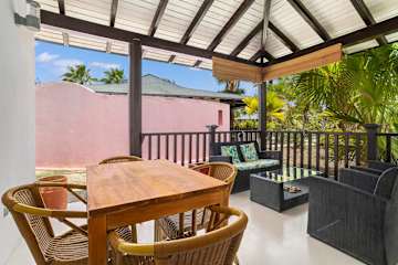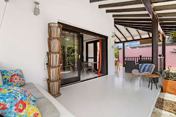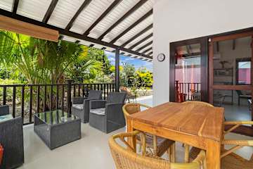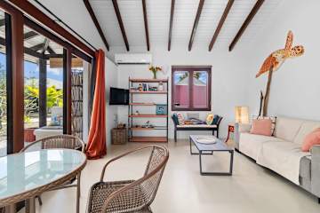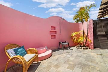 - Gedeelde tuin of andere buitenruimte De buitenruimte wordt deels gedeeld; de sfeer blijft gemoedelijk en tropisch.