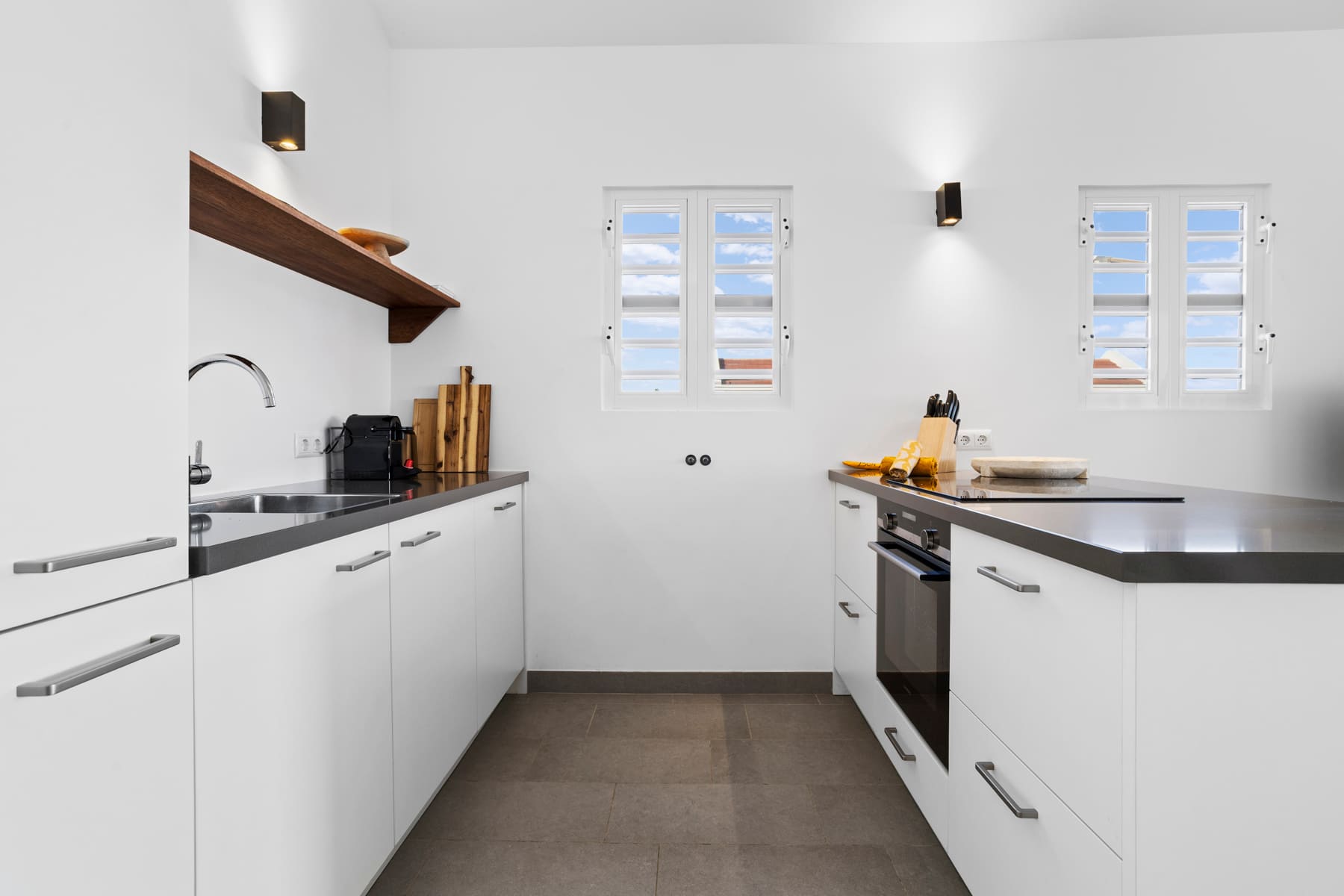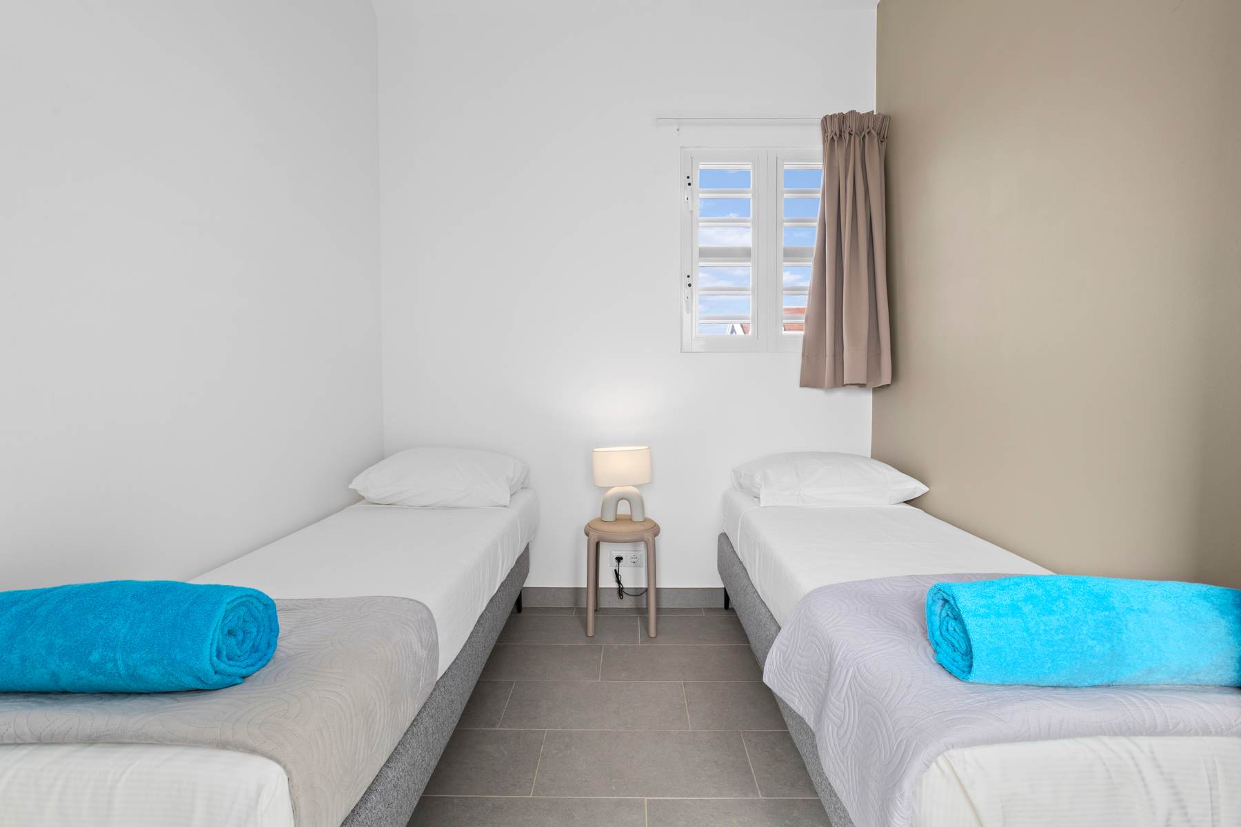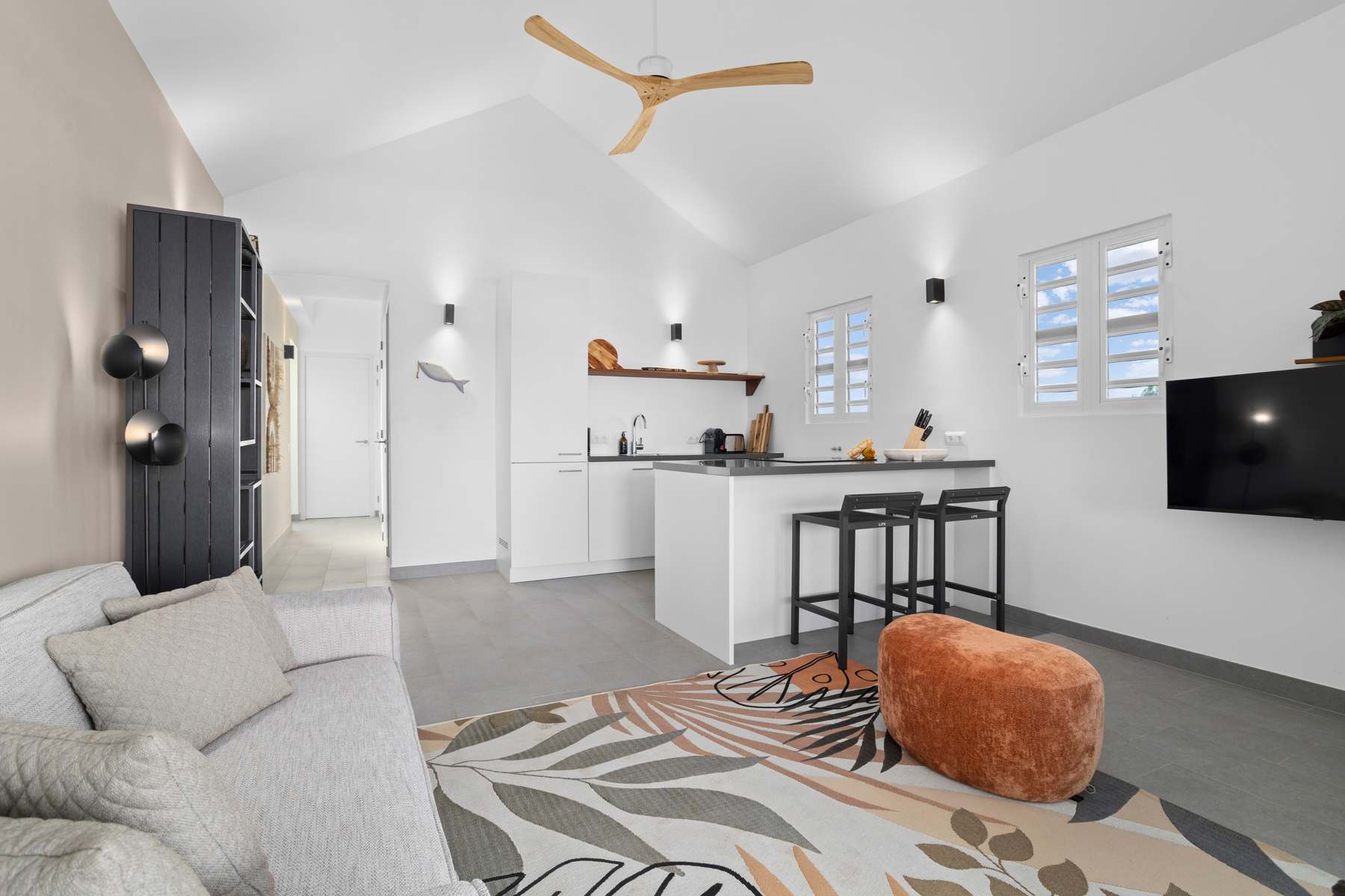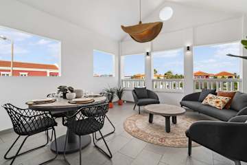 Het appartement beschikt over twee comfortabele slaapkamers met airconditioning voor een goede nachtrust, en één complete badkamer. De open keuken grenst direct aan de woonkamer en is voorzien van inbouwapparatuur waaronder een vaatwasser, koelkast, vriezer, kookplaat, oven, broodrooster, koffiezetapparaat en waterkoker. Vanuit de woonkamer stap je zo het balkon op, waar je kunt genieten van het uitzicht over de lagune en de gezellige drukte van Kralendijk.