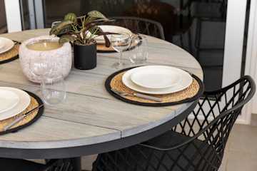 • Geen eettafel binnen – Binnen staat geen eetkamer-tafel, maar op het balkon kun je heerlijk buiten eten met uitzicht over de lagune