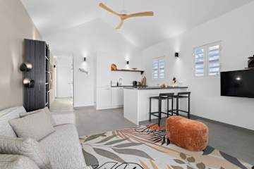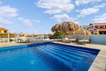 Casa Breeze is een stijlvol appartement gelegen in het Water Villas Bonaire complex in het centrum van Kralendijk. Deze moderne woning van 82 m² bevindt zich op de eerste verdieping en biedt een prachtig uitzicht over de lagune. Je woont op slechts 900 meter van Dive Friends Port Bonaire, 1.1 kilometer van Te Amo Beach en Donkey Beach, en op 1.3 kilometer van Sebastian’s Restaurant. Voor de dagelijkse boodschappen is Van den Tweel supermarkt op 2 kilometer afstand bereikbaar. Het appartement beschikt over een regulier gezamenlijk zwembad dat je deelt met andere gasten van het complex.