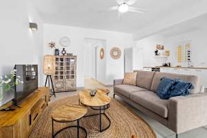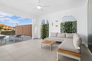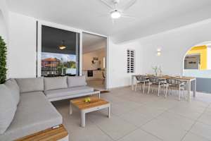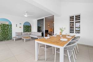 Dit gelijkvloerse appartement ligt op de begane grond van het complex in de wijk Watervillas. Vanaf de veranda en tuin kijk je uit over de privé tuin en het water van de Laguna Marina. Met een totaaloppervlak van 160 m² is er volop ruimte om te ontspannen. Van den Tweel-supermarkt ligt op 2,6 kilometer, Te Amo Beach en Donkey Beach op 800 meter, het centrum van Kralendijk op 2,8 kilometer en het populaire restaurant Cuba Compagnie op eveneens 2,8 kilometer. Voor duikers ligt VIP Diving op slechts 1,8 kilometer afstand. Het privézwembad zorgt voor heerlijke verkoeling na een dag vol activiteiten.