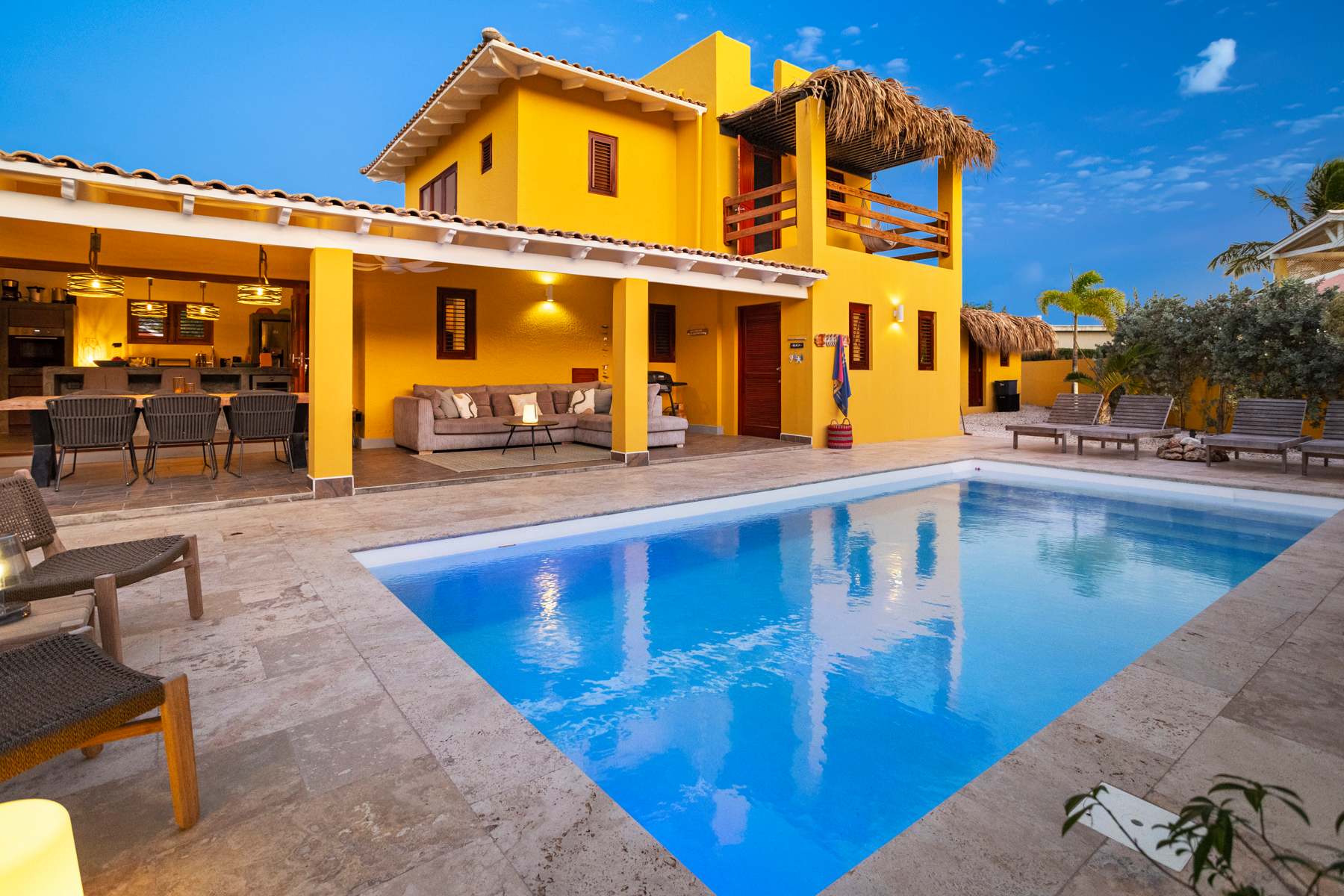 Kas Pura Vida is een vrijstaande villa in de geliefde wijk Belnem en biedt met circa 225 m² volop ruimte voor een comfortabel verblijf. De woning ligt gunstig ten opzichte van voorzieningen, met supermarkt Good and More op 1.5 kilometer, Bachelor’s Beach op 500 meter, restaurant Brass Boer op 1.8 kilometer en duikcentrum Dive Friends Delfins op 1.9 kilometer. In de ruime privétuin ligt een regulier privézwembad, perfect om na een stranddag nog even een verfrissende duik te nemen.