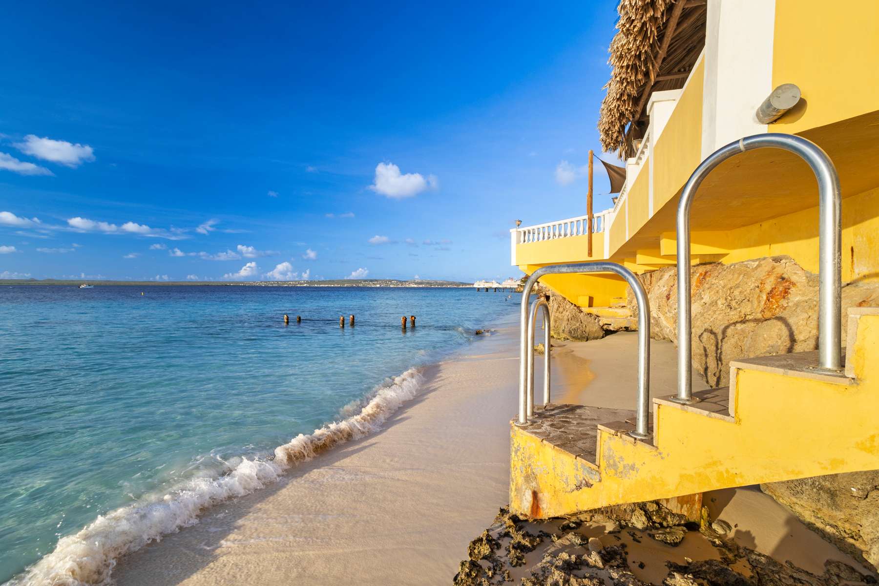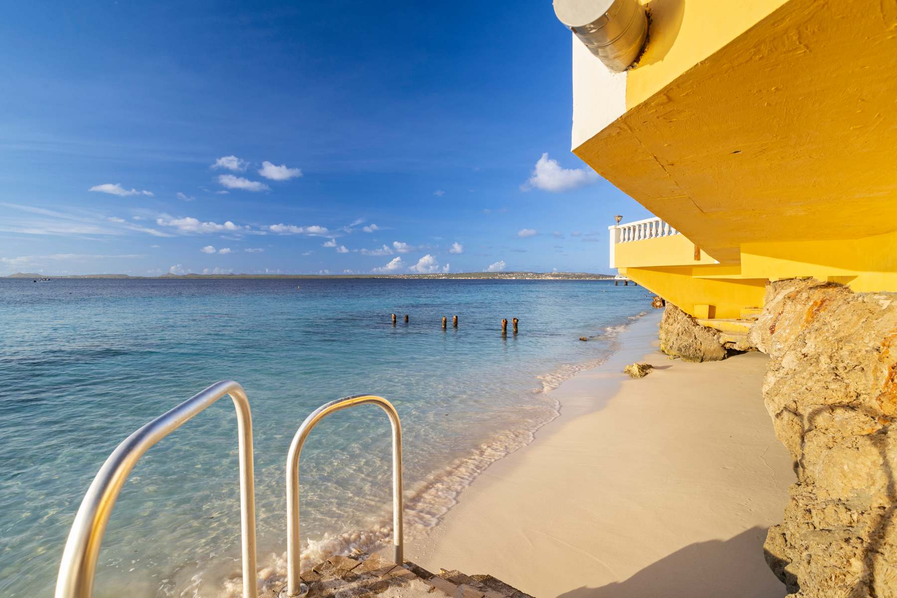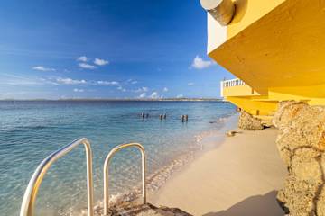 Op een paar stappen ligt de Bachelor’s Beach, een geliefd kleinschalig strandje aan de zuidrand van Kralendijk. Je daalt een trap af langs een rotswand van ongeveer 3 meter naar een smalle, vaak half verborgen strook zand. Het water is hier kalm en helder, met mooie snorkelmogelijkheden in de ondiepe koraaltuin dichtbij de kant. Neem waterschoenen mee voor het in- en uitstappen. Het is een relaxte plek voor een duik in zee en om de dag af te sluiten met uitzicht over de Caribische Zee.