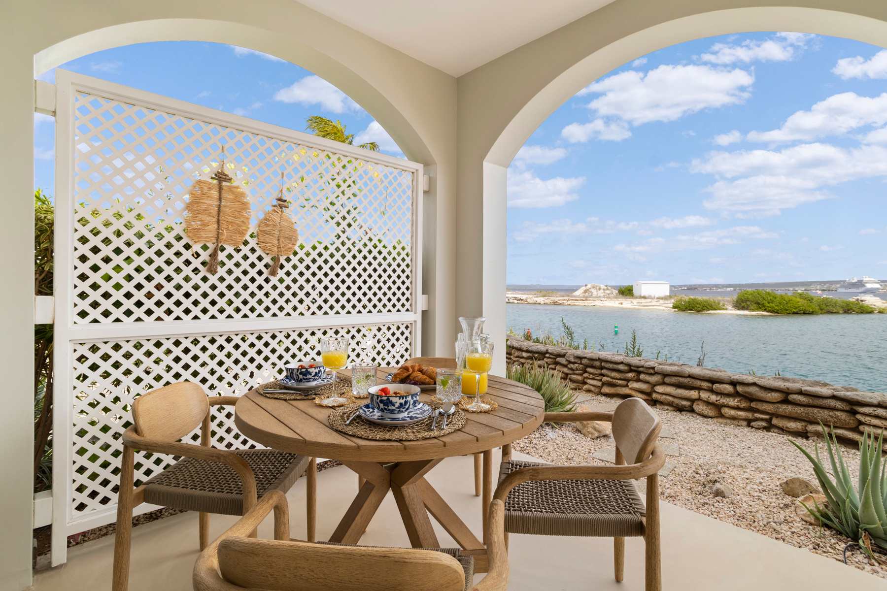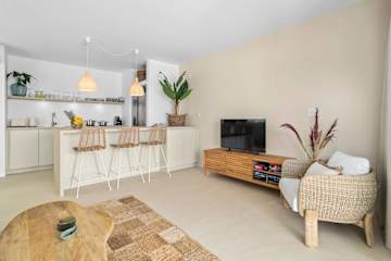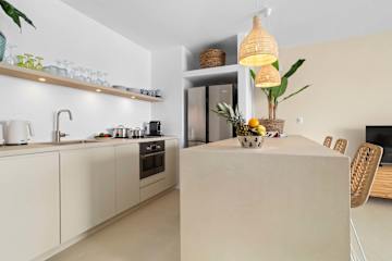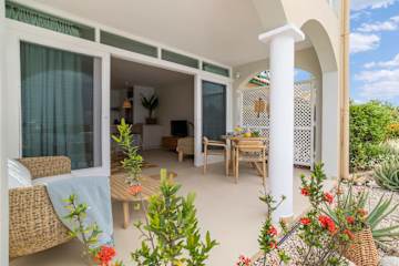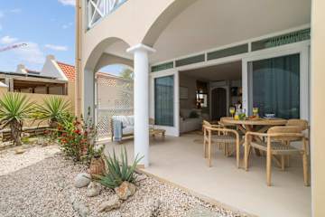 Het appartement Laguna Reef heeft één slaapkamer, de Hoofdslaapkamer, met een comfortabel kingsizebed en één badkamer. De woonkamer sluit aan op een terras aan zee, waar je heerlijk buiten kunt zitten. De nieuwe, open keuken grenst direct aan de woonkamer en is goed uitgerust met een kookplaat, koelkast, vriezer, vaatwasser, magnetron, oven, broodrooster, koffiezetapparaat en een waterkoker ontbreekt niet, evenals een televisie en een wasmachine voor extra gemak.