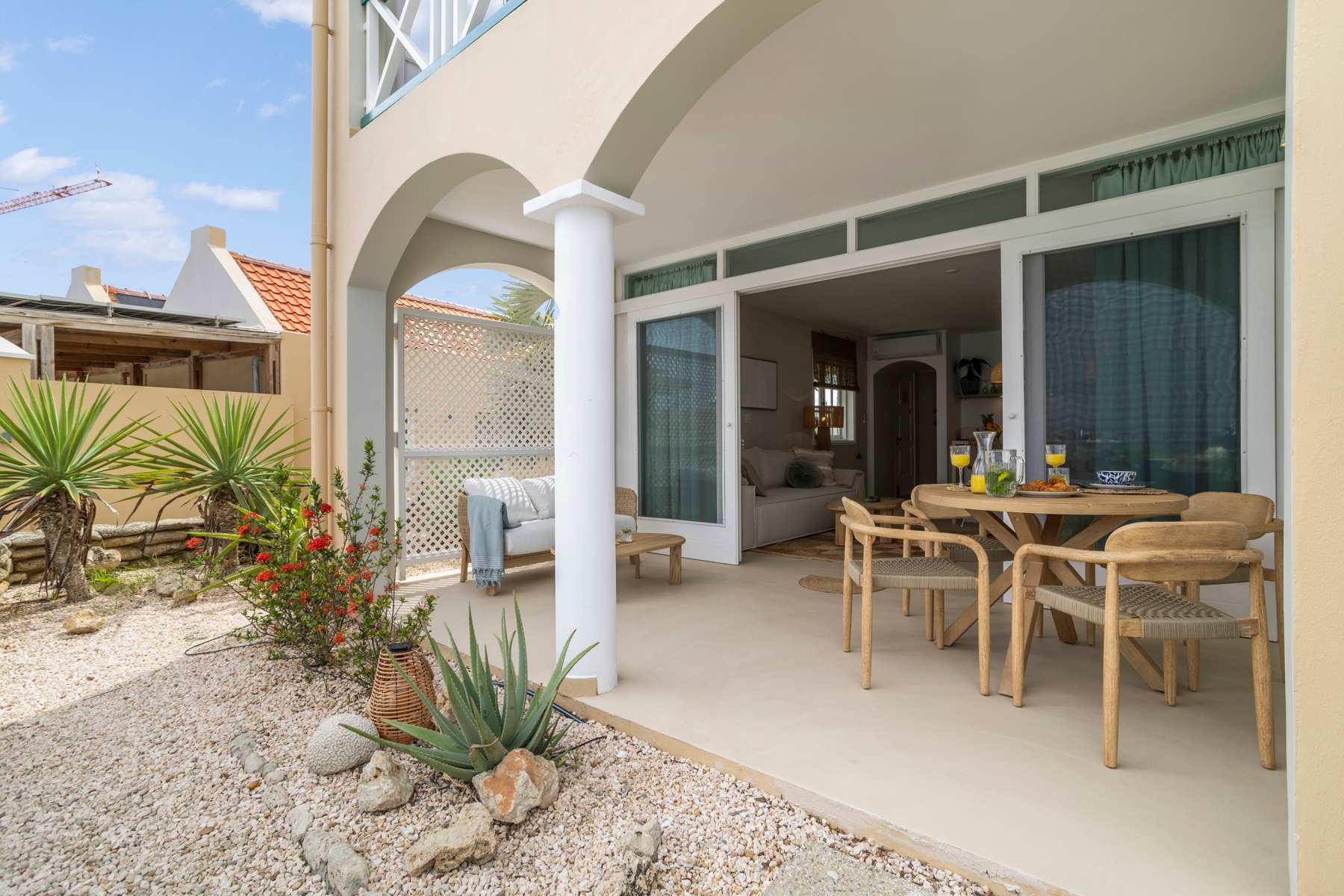 Als gast van Laguna Reef heb je toegang tot het volledige appartement, inclusief de slaapkamer, badkamer, woonkamer, de open keuken en het aangrenzende terras aan zee. Daarnaast kun je gebruikmaken van het gemeenschappelijke zwembad in het complex en parkeren kan gratis op straat bij de accommodatie. Om onze gasten hartelijk te verwelkomen en uitleg te kunnen geven over de accommodatie en ons mooie eiland, verzorgen we alle aankomsten persoonlijk! De Sunwise-hosts van de accommodatie maken afspraken met je over je aankomst.