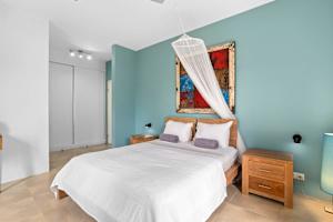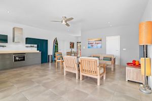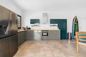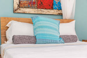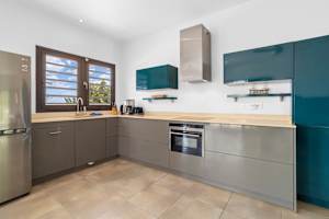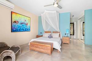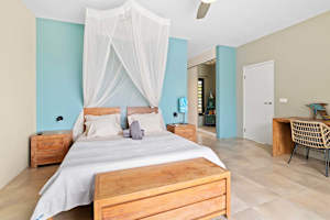 Villa Vista Blue heeft vier slaapkamers, waarvan één met een kingsize bed (180 × 200 cm), twee met queensize bedden (160 × 200 cm) en één slaapkamer met twee eenpersoonsbedden (90 × 200 cm). Er zijn drie badkamers, waarvan één en suite. De open keuken sluit direct aan op de ruime woonkamer en is voorzien van een kookplaat, koelkast, vriezer, oven, magnetron, vaatwasser, koffiezetapparaat, waterkoker, broodrooster, ijsmaker en keukenmixer. Buiten vind je een overdekte veranda, een dakterras en een tropische tuin met een heerlijk privézwembad – perfect om af te koelen na een duikdag.