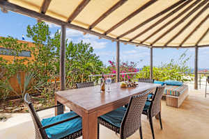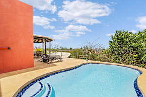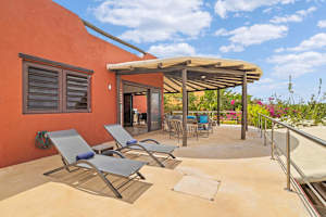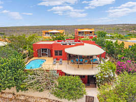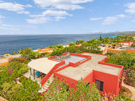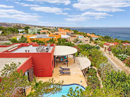 Deze royale villa ligt op de begane grond van het kleinschalige en rustige El Pueblo Villas, boven op de kliffen van Sabadeco. Vanaf de veranda, het dakterras en zelfs vanuit het zwembad heb je een weids uitzicht over de Caribische Zee en in de verte zie je Klein Bonaire liggen. De villa beslaat een totale oppervlakte van 280 m² en biedt volop ruimte voor een comfortabel verblijf. De beroemde duikspot Oil Slick Leap ligt op slechts 500 meter afstand. Het gezellige centrum van Kralendijk bevindt zich op 7,6 kilometer. Restaurant Rum Runners ligt op 5 kilometer, het Chinese restaurant Zhung Kong op 4,5 kilometer en Dive Friends Hamlet op 4 kilometer.