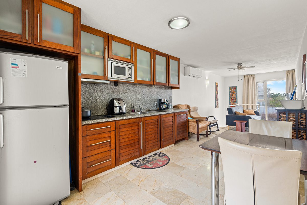 De appartement bevindt zich op de begane grond van Seaside Apartments, direct aan de kustlijn van Kralendijk met vrij zeezicht. Isidel Beach Park ligt op 1.1 kilometer, ideaal voor een snelle duik of snorkelsessie. Het centrum van Kralendijk bevindt zich op 1.3 kilometer, net als restaurant It Rains Fishes, terwijl supermarkt Zhung Kong op 2 kilometer ligt voor de dagelijkse boodschappen. De combinatie van de boulevardlocatie, het uitzicht op zee en de nabijheid van stad en strand maakt dit een aantrekkelijke basis voor sportieve bewoners die graag actief zijn op en rond het water.