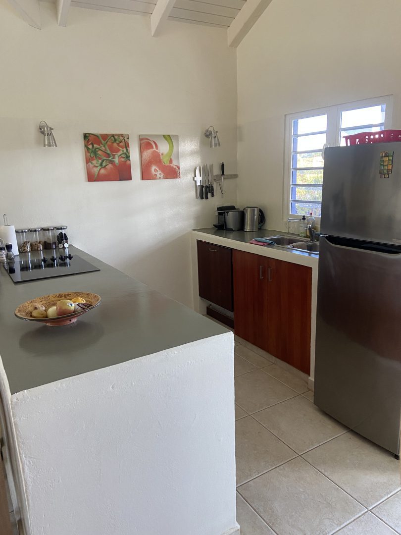 De villa heeft drie slaapkamers, waarvan 1 kinderkamer of eenpersoonsslaapkamer, en twee badkamers, perfect dus voor een klein gezin of een paar dat op zoek is naar ruimte en privacy. De open keuken, gelegen in het woongedeelte, is voorzien van alle nodige apparatuur, waaronder een vaatwasser, koelkast, kookplaat en oven. Het vrijstaande huis beschikt ook over een ruime tuin rondom en een overdekte veranda die goed op de wind ligt, ideaal voor de nodige verkoeling.