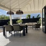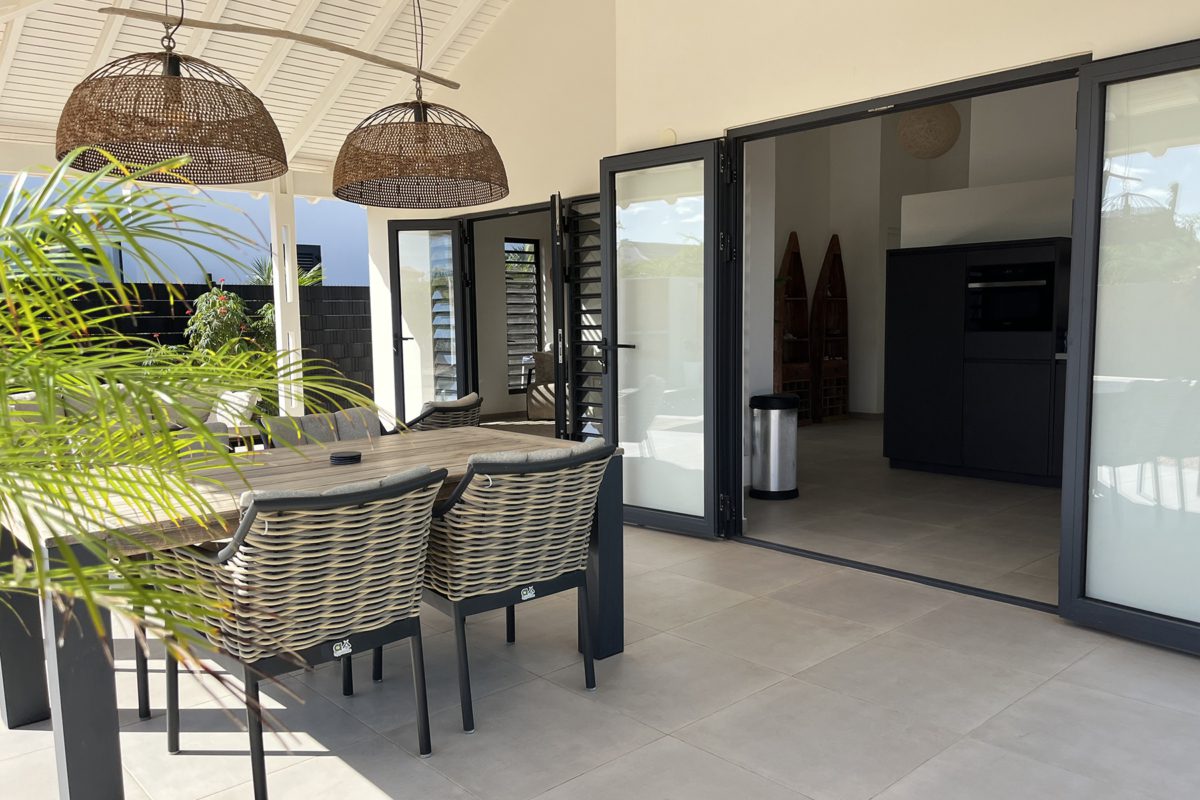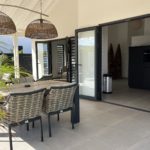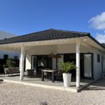 Dit prachthuis villa biedt ruime leefruimtes, met twee slaapkamers en twee badkamers. Het hart van het huis is de open keuken met een modern, donkerkleurig keukenblok en diverse apparatuur zoals een koelkast, inductie kookplaat, vaatwasser, koffiezetapparaat, waterkoker, magnetron en oven. De overdekte veranda, met een gezellige eethoek en loungegedeelte, kijkt uit over de ruime tuin, ideaal voor ontspannen dagen en gezellige avonden.
