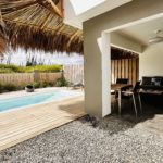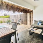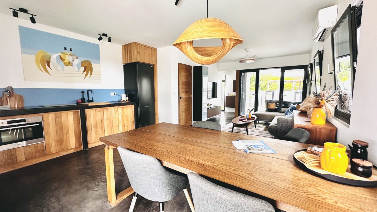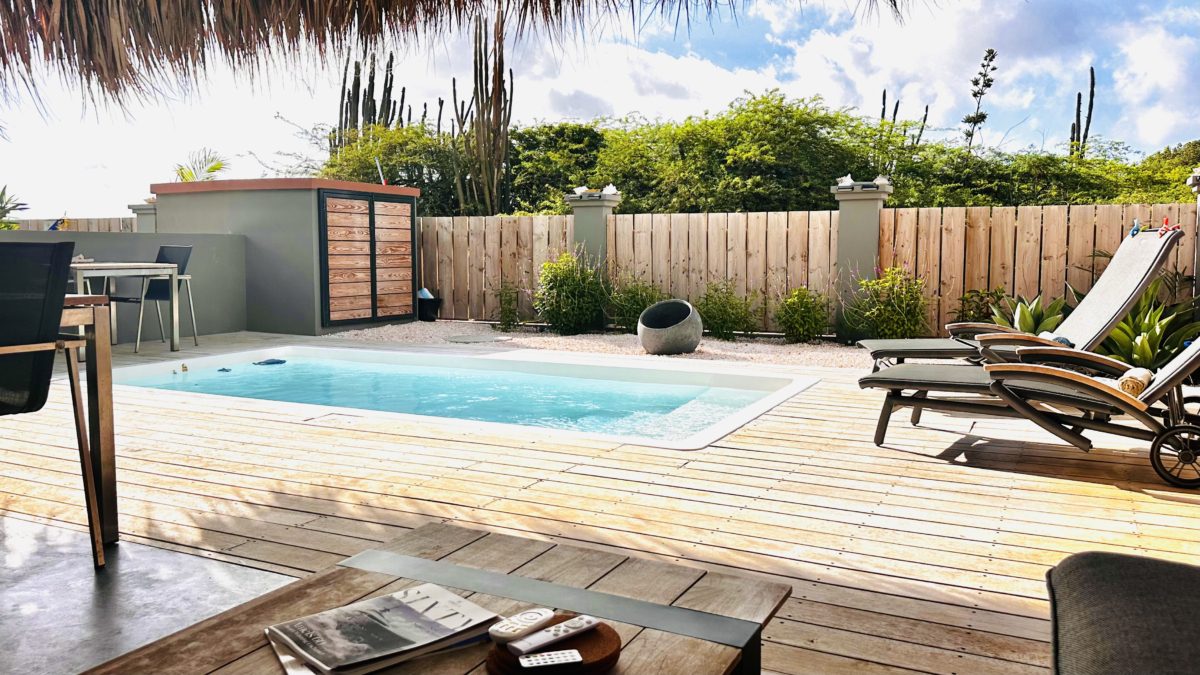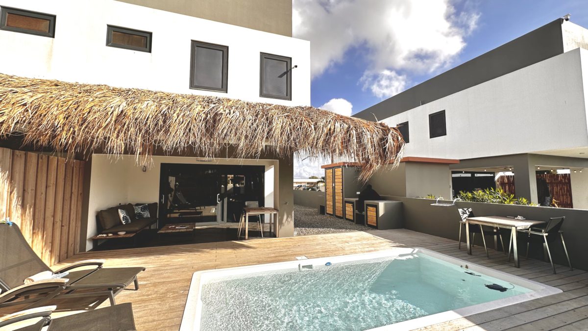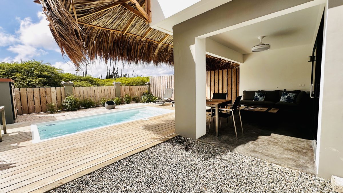 Deze twee-onder-een-kapwoning beschikt over twee slaapkamers, twee badkamers en een apart toilet, perfect voor een gezin of voor werkenden die extra ruimte nodig hebben. De open keuken sluit aan op de woonruimte en is uitgerust met diverse moderne apparaten zoals een vaatwasser, koelkast, inductiekookplaat, Nespresso koffiezetapparaat, waterkoker, combioven en broodrooster. Het huis heeft een heerlijke tuin met een Magnapool privézwembad, waar je ongestoord kunt genieten van het tropische klimaat. Parkeren kan gratis op eigen terrein. Buiten is er een royale buitenkeuken, die is voorzien van een pizzaoven, barbecue en spoelbakken voor watersportuitrusting. Verder is er een grote berging voor extra opslagruimte. Het pomphuis is volledig in steen uitgevoerd en op het terrein is een ruime palapa-overkapping gerealiseerd – ideaal voor schaduw en verkoeling tijdens de warme middagen.