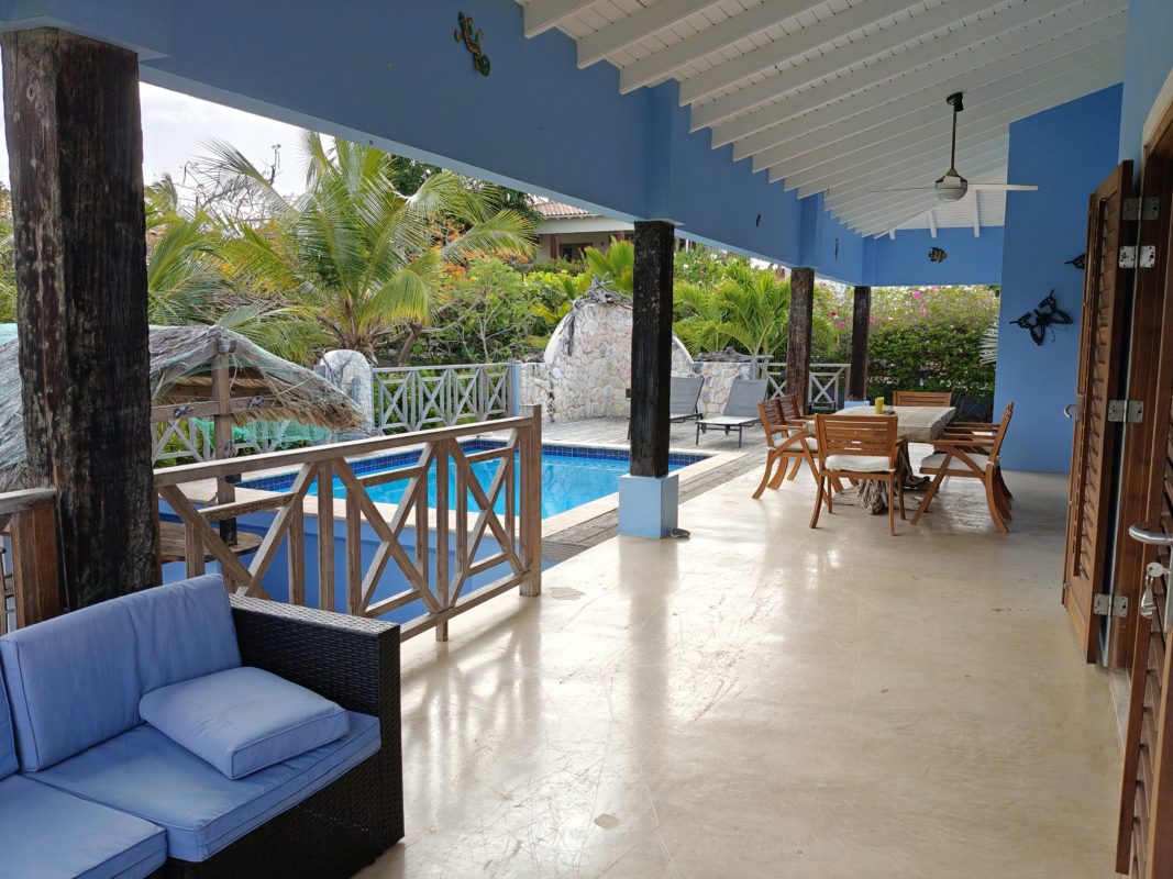 Deze vrijstaande villa op Bona Bista 4A in de populaire wijk Bona Bista biedt een ontspannen woonomgeving met veel privacy en een fraai uitzicht. Met een totale oppervlakte van 230 m² is er volop ruimte, zowel binnen als buiten. De villa beschikt over een volledig privé magnesiumzwembad en airco in alle drie de slaapkamers, ideaal voor wie comfort en verkoeling zoekt. De tropische tuin en ruime veranda zorgen voor een sfeervolle setting om te ontspannen of thuis te werken. Dankzij het gratis parkeren op eigen terrein of in de straat, kom je altijd makkelijk thuis.