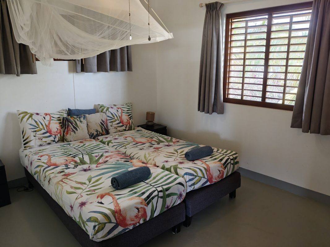 De villa is volledig gelijkvloers en beschikt over drie slaapkamers en twee badkamers. In elke slaapkamer staan twee eenpersoonsbedden van 200 bij 90 centimeter – ruim en comfortabel. De open keuken grenst direct aan de woonkamer en is uitgerust met een koelkast, vriezer, kookplaat, oven, magnetron, koffiezetapparaat, vaatwasser en een wasmachine. De woonkamer geeft toegang tot een ruime veranda en tropische tuin. De barbecue en buitenmeubels maken het buitenleven hier compleet. Het magnesiumzwembad is ideaal om in alle rust af te koelen of actief baantjes te trekken. Parkeren kan gratis op het terrein of in de straat.