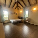 Deze villa beschikt over drie ruime slaapkamers, waarvan de hoofdslaapkamer een en-suite badkamer heeft. Daarnaast is er nog een tweede badkamer en een apart gastentoilet. Er is verder nog een grote werkkamer. De open keuken sluit naadloos aan op het woongedeelte en is voorzien van moderne apparatuur zoals een afwasmachine, koelkast, fornuis, koffiezetapparaat, waterkoker, oven en broodrooster. De veranda op de wind biedt een prachtig uitzicht op de tuin en het privézwembad dat momenteel wordt aangelegd. Parkeren kan gemakkelijk en gratis direct voor de deur.